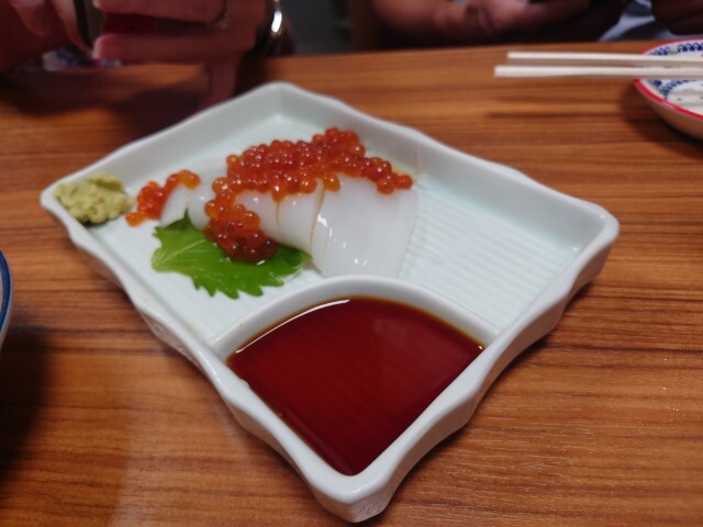 夏らしいと言えばホヤです。ホヤも大好きなのですがまさに季節の味で美味い!飲み物は白から黄色に変更してどんどん食べて飲み進めます。マグロの赤身、イカも美味い!とにかく何を食べても美味い!
