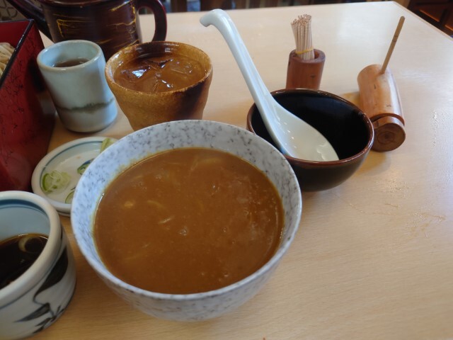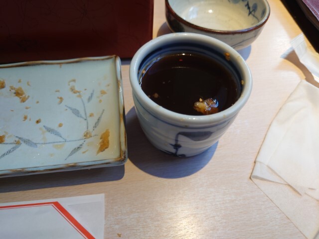 このサービス日本酒がまた美味い!蕎麦と天ぷらにも合います。さらに食べ進めてあっという間に完食。最後は勿論蕎麦湯を飲んで締めました!