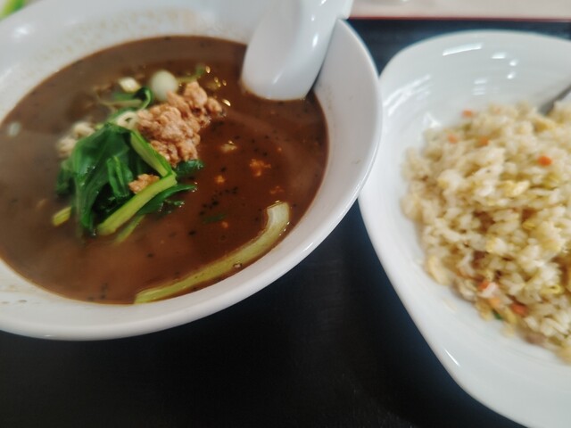 いつもはタンツーメンなので今日は5番定食、黒胡麻担々麺セットを。