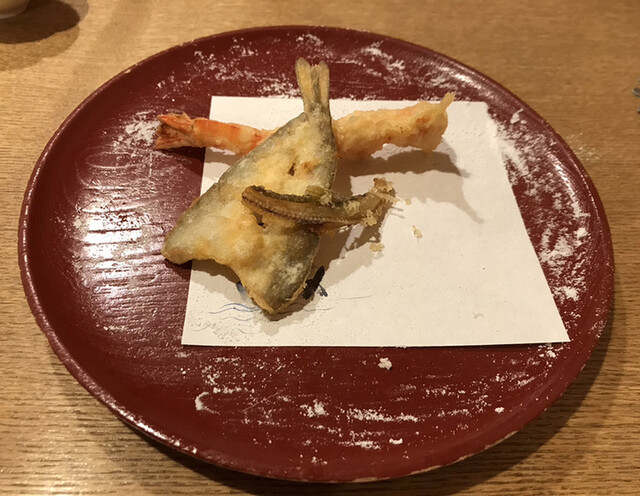 2名で訪問するはずであったが、南海トラフ注意報のため急遽1人での訪問となってしまったが、快く対応して頂いた。お決まりの八寸から始まり、お造り、おとなのポテトサラダ、縞アジフライ、天ぷら盛り合わせを注文。アルコールは生ビールと写楽を飲む。どれも美味しく頂いたが、1人のため土鍋ご飯を頼めなかったのが残念であった。