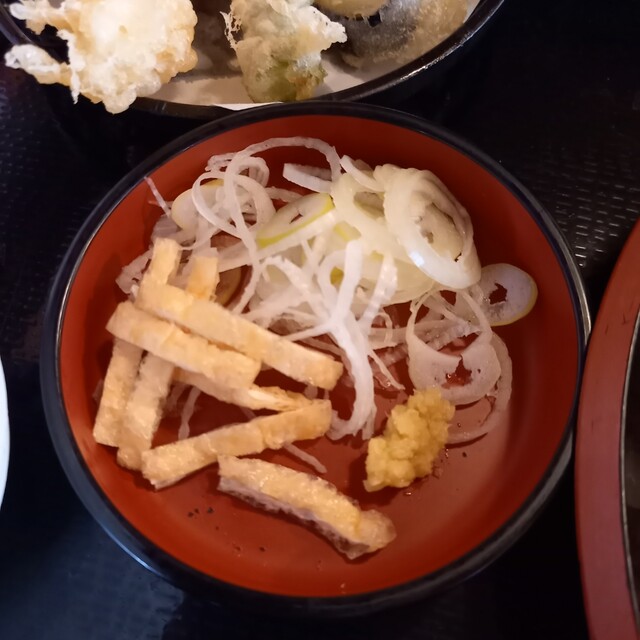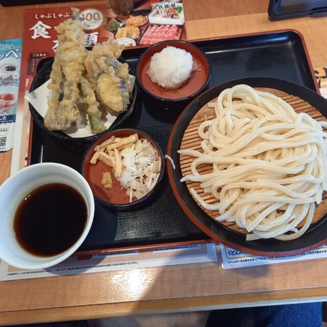天ざるうどんは、さつまいもが入っていたのでナスに変更してもらいました