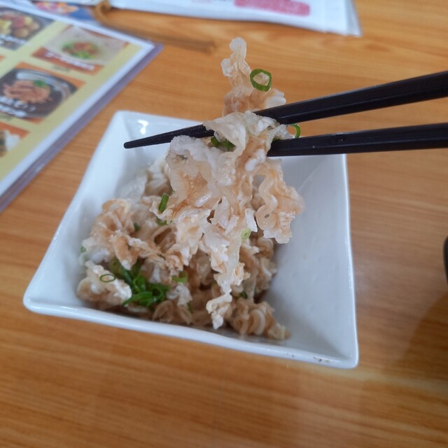 ミミガーの唐揚げは、見た目は天かす?と思うたわ(笑)食べたら、ミミガーの芯があるんだよね