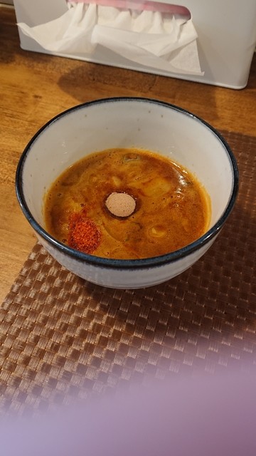 何時ものごとく極太麺を啜り、咀嚼でなくほぼ飲み込む(なかなか咀嚼が極太すぎて難しい)が