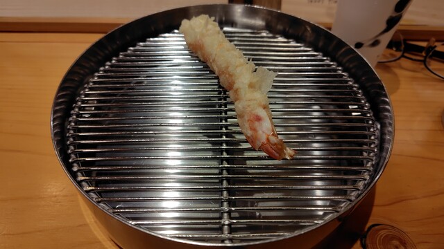 海老は熱々で生の食感がプリッと残る不思議な揚がり具合