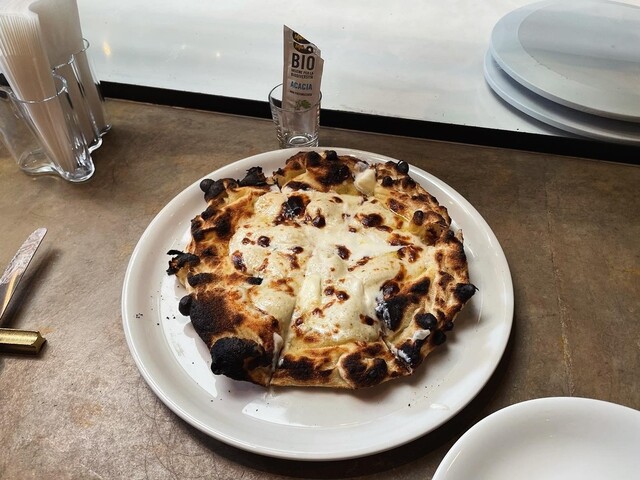 水牛のモッツァレラとトマトのピザと、チーズとハチミツのピザをチョイス