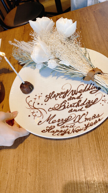 プレートにお祝いのメッセージ書いてくれたのですが、伝えたい事全部書いてくれた