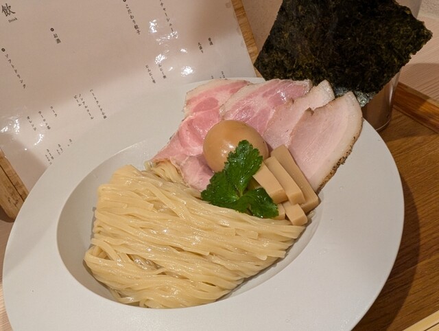 この日は12時台のランチタイム。まぁ、いつも通り行列だろうなぁと覚悟で行ってみると、10人弱ぐらいしか待ってないという絶好なタイミングでした。20分ほど待っての入店なのでまだまだ12時台、店員さんからは味噌ラーメンをオススメされましたが迷うことなく黄金貝つけめんを注文!