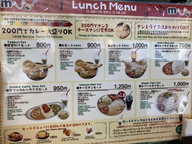 日替わりセット800円+チーズナン変更250円、ナンのお替わり無料
