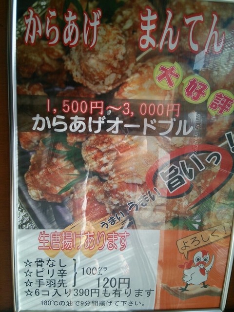 元々は、ニンニク不使用のお店、飯塚の「からあげ大将」の添田店として営業されていたのですが、数年前に独立されて店名も「からあげ まんてん」となっています。