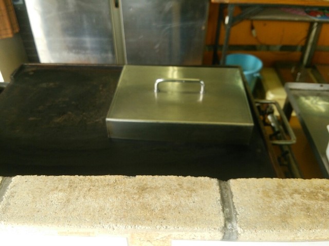 焼く経過を見ていると、熱された鉄板に手際よく餅を並べ、おにぎりも同じく並ぶ。