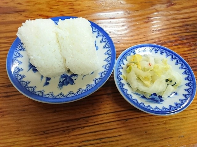 オーダーは今回はいつもと同じくチャーシューメン大盛り650円、おにぎり二個160円
