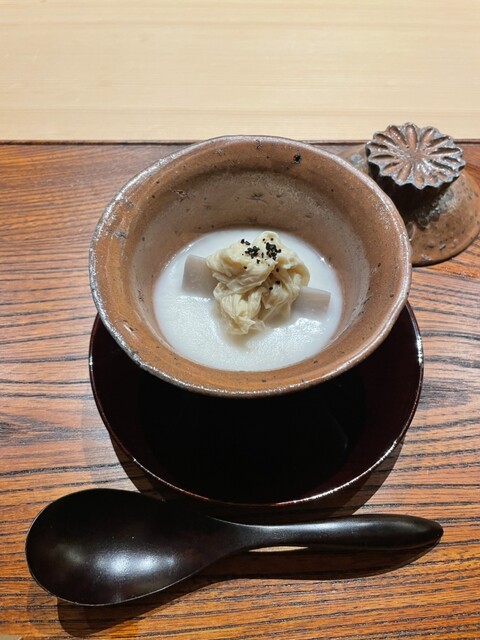 石垣貝、つぶ貝、しじみ出汁と蕪のすり流し◎