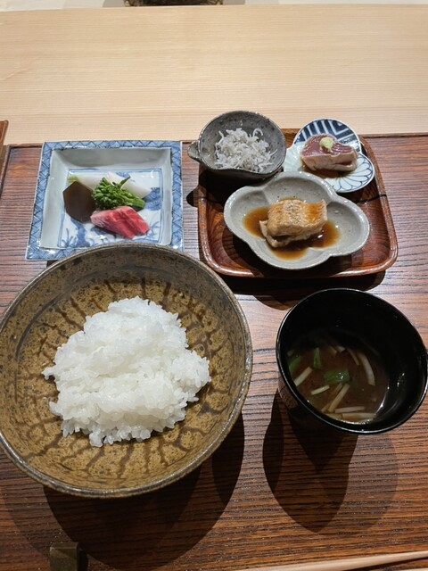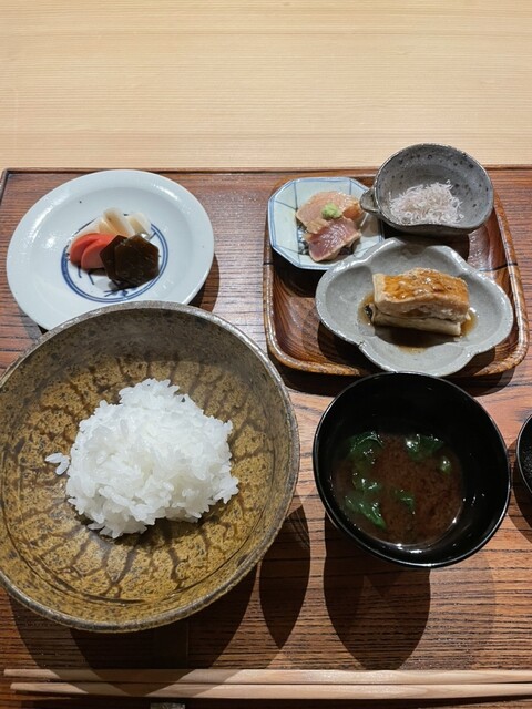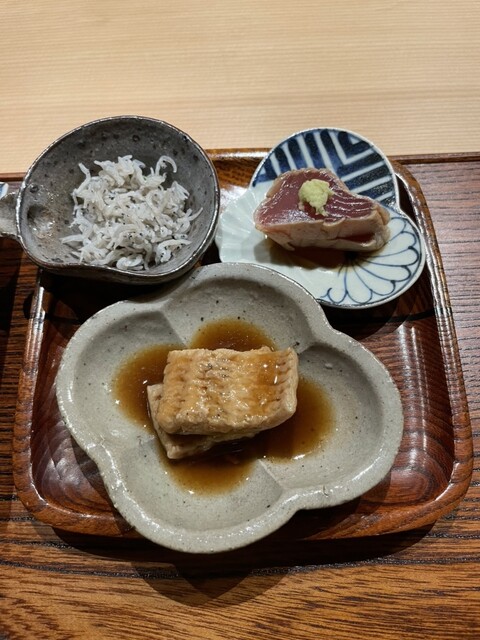 鰤の漬け、アナゴ、山椒ジャコ、お漬物
