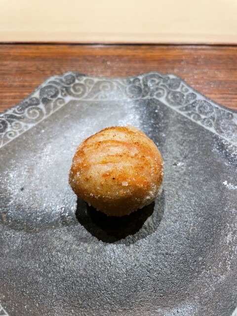 香箱蟹、蕪のすり流し◎すり流しには甲羅を油で煮出したカニオイル、揚げ粉にもかにの出汁を含めて、なかなかに狂気ですね、美味しい訳だ