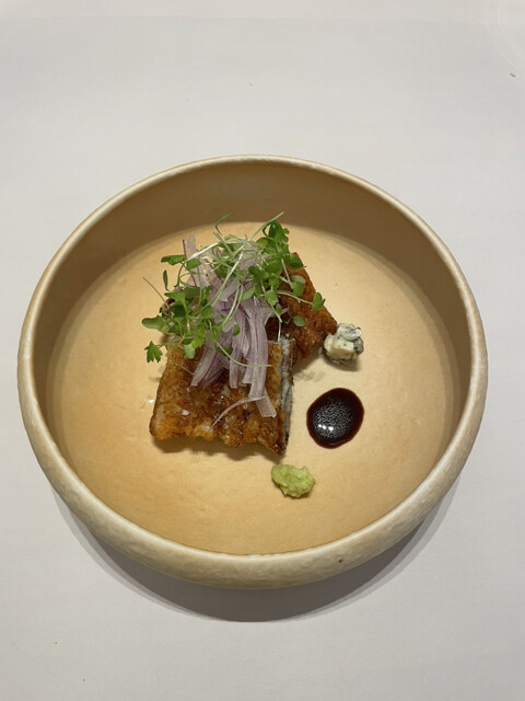 鰻炭火焼、ブルーチーズ、赤ワインソース、なめろう、わさび◎