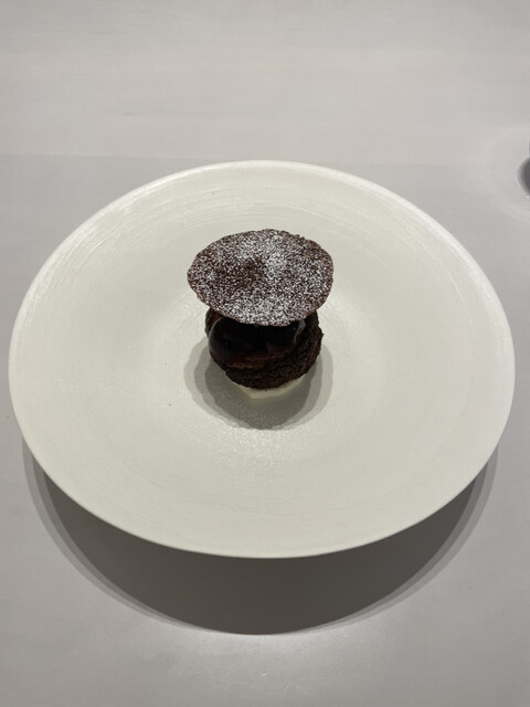 チーズソース、カカオシュー、チェリー、カルダモンミルクアイス、カカオチュール◎