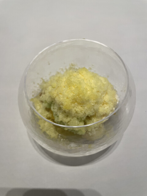 パイナップルのフレッシュアイスゼリーシャーベット、ナッツ、赤しそ◎口が楽しい