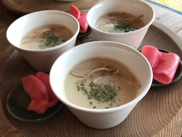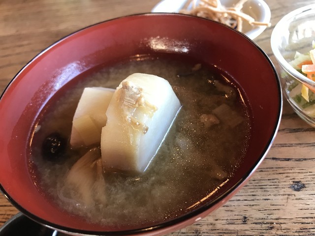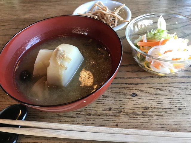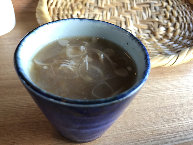 加えて、今日のお通しには『きのこと芋の味噌汁』を出してくれました!!