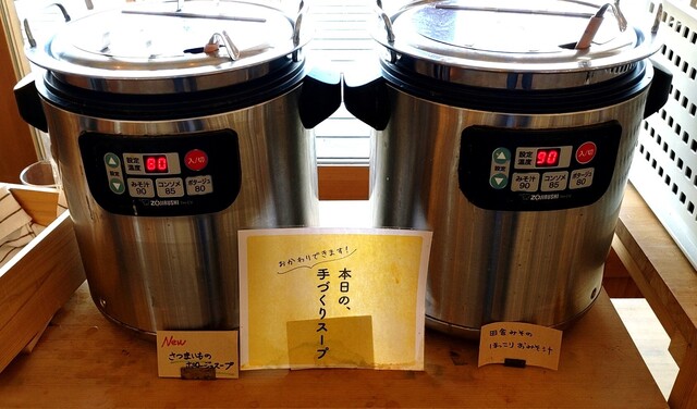 スープバー(さつまいものポタージュスープ、田舎みそのほっこりおみそ汁)