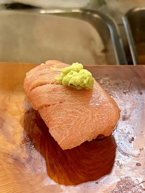たっぷりとネギと薬味が乗せられた鯵、脂の乗り具合も今が「旬」と言える一貫でした。