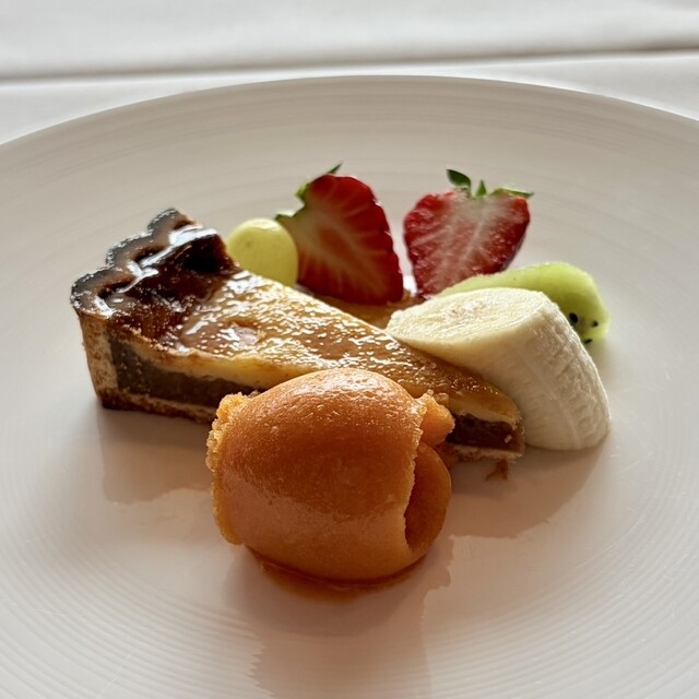 一口含むと、蟹の身が驚くほどフワフワと解け、そこに重なるクリームソースの程よい酸味が食欲を優しく刺激します。銀杏がアクセントのテリーヌも、クラシックな王道の味わい。添えられた砂肝のソテーは、噛み締めるほどに旨みが溢れ出し、ホワイトアスパラの瑞々しさと実に見事なコントラストを描いています。