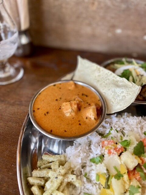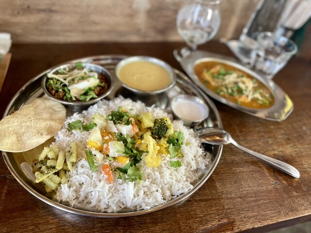 本日の2種盛りプレートのお姿 エビカニココナッツとポークと赤唐辛子