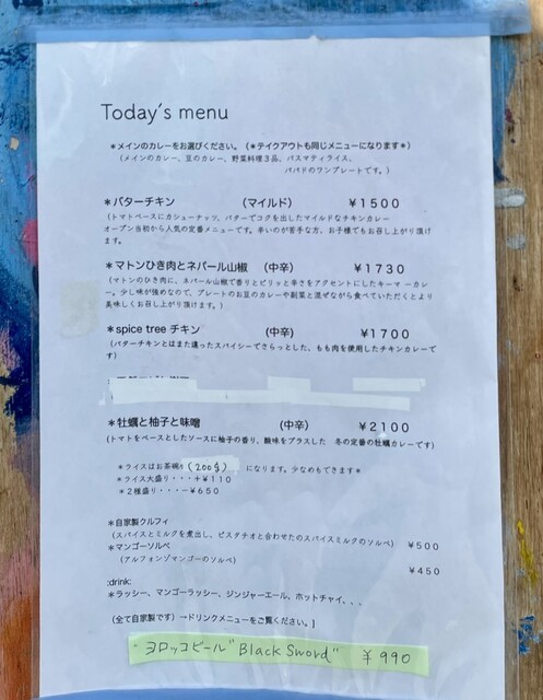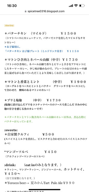 今年初のスパイスツリー、冬のスペシャリテ、牡蠣と柚子と味噌のカレーを求めて、本日はソロで平日ランチで