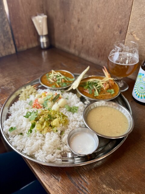 相棒に今週のカレーを譲り、相棒は久々のスパイスツリーチキンとエビカニココナッツの2種盛り