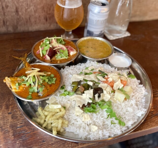 久々の日曜日のスパイスツリー 到着すると、まさかのバターチキンしか残って無い表記‥ガックリしていると、マトンのキーマなら何とか一杯取れる!と飯村さんのご好意で完成した2種盛 いつもより倍美味い!