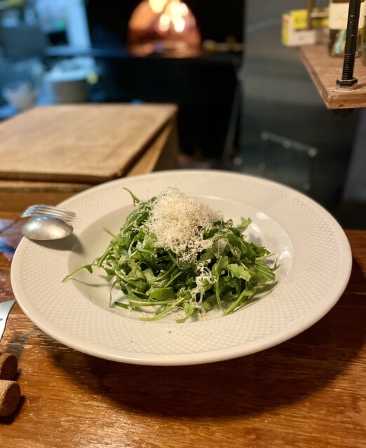定番のルッコラのサラダ、味が濃くてうまい!