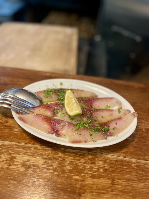 鰤のスモークカルパッチョ こちらの魚のスモークは間違え無いので、絶対に頼むべき一皿