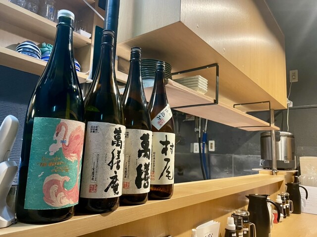 カウンターに出ている芋焼酎の品揃え 実は、別の品種もストックにされている事もあり