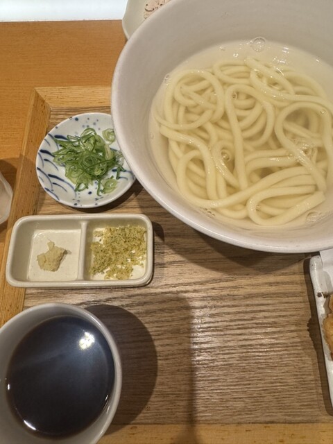 注文したのは合鴨と塩鶏、親子天うどん(かしわ2つ・半熟たまご)釜揚げうどん。