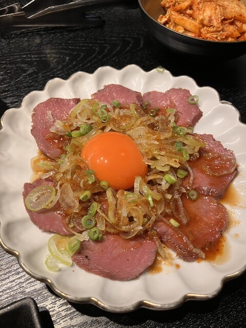 牛タンネギユッケを早々に頼んで、ご飯小の上に乗っけて、パクリ!