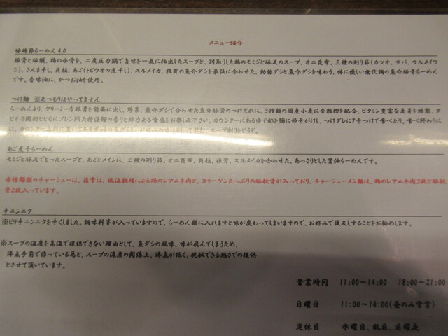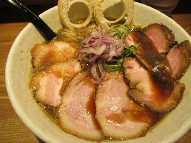 煮干しブラックチャーシューをいただきました。平日の昼過ぎの時間だといいうのに、待ちがいる状況。このお店の人気っぷりを表していると思います。この後のためにご飯は我慢して、ラーメンのみにしておきましたが、素晴らしいいっぱいでした