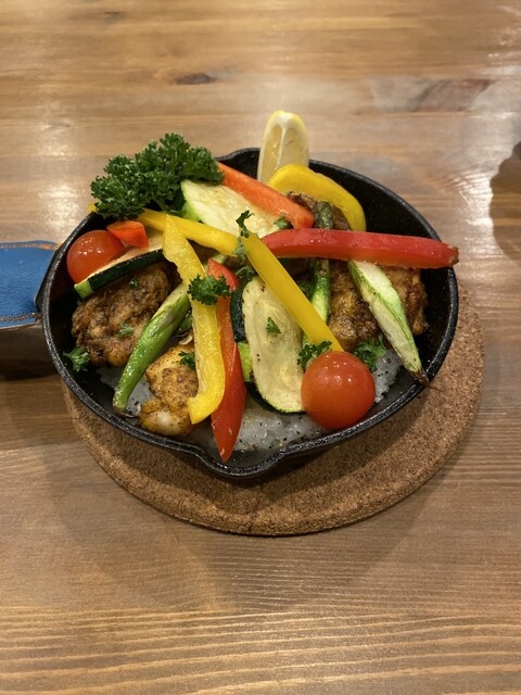 まずはおすすめのケイジャンチキンペッパーライスにします。コーヒーもつきます。 アツアツのスキレットにのってきました。パプリカがとても美味しいです。チキンはスパイシーでとても美味しくご飯ももちもちでした。 スープはきのこのスープでしたがとても濃厚ですごく美味しかったです。