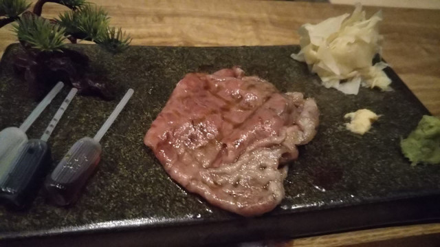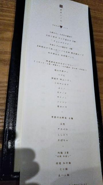 2018.07.23自分で焼かない、中目黒の大人なカウンター焼肉で女子会 以前訪れた、隠れ家的な大人の焼き鳥店、中目黒いぐちその系列店で同じく中目黒にある、自分で焼かないカウンター焼肉焼肉いぐちで女子会してきました前回も私の中ではお高かったですが、今回は大台超えた。。。でも本当に美味しくて、サービスも良くて、完璧でしたカメラ忘れて、スマホ画質ですみません お店は中目黒駅から160mとの事、距離的には近いのですが看板も何も出ていなくて、本当に分かりません前のいぐちは、小さい表札くらいは、あった気がしたけど。。何も書かれていないドアから、店員の方がたまたま出てきてお伺いして分かりました 他の方もいたので、お店の内装全体写真は撮れていませんが長い白木のカウンター、松の盆栽、カウンター席は中目黒いぐちと同じ、大人な雰囲気です メニューはおまかせコース4,980円(20品)裏面におすすめの追加メニューがあります 飲み物メニューは赤白ワイン、焼酎、梅酒、ソフトドリンクなど色々ありますグラスワイン700~900円くらい まずはキムチの盛り合わせ、手造りナムルチョレギサラダに、お口直しの大根おろし辛い物はあまり得意ではない私ですが、問題なく食べられるキムチゴボウのキムチとか、初めて食べたかも スポイトに焼肉のたれなどが入っていますレモン汁と九州の甘めの醤油、焼肉のタレだったと思いますお好みでどうぞというスタイルですが、お勧めも教えてくれますお皿にはガリやワサビ(・・・多分)も積んであります 赤身の肉寿司最初っから美味しいです柔らかいし、肉の旨味が良い 極みの黒タン、玉葱タンって最近、クセが気になってあまり食べていなかったけどこれは全く気にならない、美味しい玉葱も甘いです リブ芯、エリンギ国産牛特上ハラミ?、ナス?ズッキーニ? ちょっと記憶が薄らいでしまっていますが間違いなく美味しかったです 8時間かけて取ったいぐち名物贅沢鶏スープ和牛煮込み 自家製パンと鶏スープは中目黒いぐちにもありましたが、鶏の旨味?コラーゲン?とにかく飲み終わるのが勿体ないくらい美味和牛煮込みも少量ですが、しっかり主張してくる美味しさ 写真撮り忘れたのもあったかもメニューによればまだ、トモサンカク、上ミノ、カメノコ、カイノミ、シンシン、肩ロースがあったはず皆焼き加減が絶妙で、旨味が強くて、美味しかったお肉それぞれ味わいが違うんだな~と改めて思いました 〆の肉鮨3貫の前に、焼きしゃぶという名物料理?があると言われうっかり頼んでしまったのですが、サシたっぷりのお肉ですもう見た目だけでテンション上がる、自分で食べた事ないレベルのお肉かも(これが高会計になった理由かもしれませんが。。) 当然、焼いても美味しいですよもう口の中でとろけますこれ1枚で幸せになれそうな気がします(・・大袈裟ですね) 名物手渡し肉鮨3貫特選和牛鮨、とり鮨、生ハム鮨 生ハムをお寿司にっていうのも斬新ですがやっぱり和牛が美味しかったかな多すぎないシャリの量が、ネタを引き立たせますね ここまででやめておけば良かったのに、追加でさらに食べてしまったガーリックライス680円、たかごかけごはん580円、極みの黒タン390円、上赤身360円、特製いぐちカレー880円、いぐち名物らーめん880円等 特製いぐちカレー、いぐち名物らーめんを追加で頼んでシェアしました完全に食べ過ぎた。。。。美味しかったけど。らーめんは、8時間かけて取ったいぐち名物贅沢鶏スープのラーメンなのでそりゃあ美味しいに決まってる ちょっとずつ色々出てきて、女子向きデート向きな焼肉だと思いますがっつり食べたい方には向かないかな?沢山いるカウンターのお客様とそれぞれ話をして和やかな空気を作るのは、やはり中目黒いぐち同様素敵な空間でした ただお酒を1人2、3杯飲み、追加料理も頼んだらお会計は1人1万円を超えました。。。食べ過ぎたし頼み過ぎたし、美味しかったけど庶民な私にはさすがにお高い。。 いぐちグループにはまた行きたいけど頼み方は考えたいと思いました