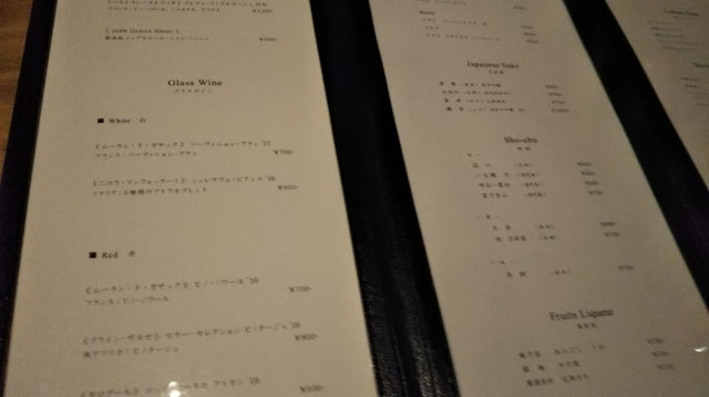 飲み物メニューは赤白ワイン、焼酎、梅酒、ソフトドリンクなど