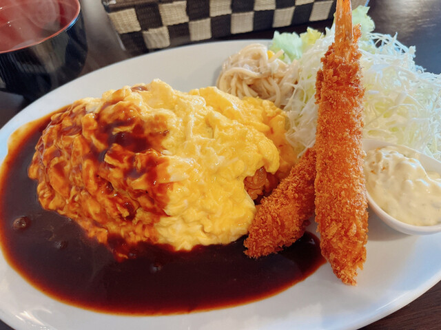 私が頼んだオムライスとエビフライ
