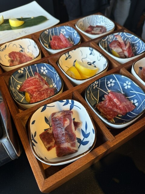 メニューの中でも特に印象的だったのが「升箱 肉4種盛り」。見た目のインパクトはもちろん、希少な部位の食べ比べができて大満足でした!