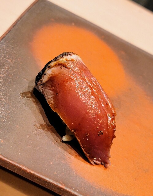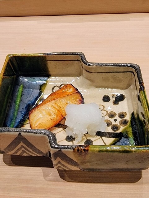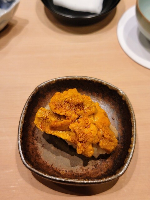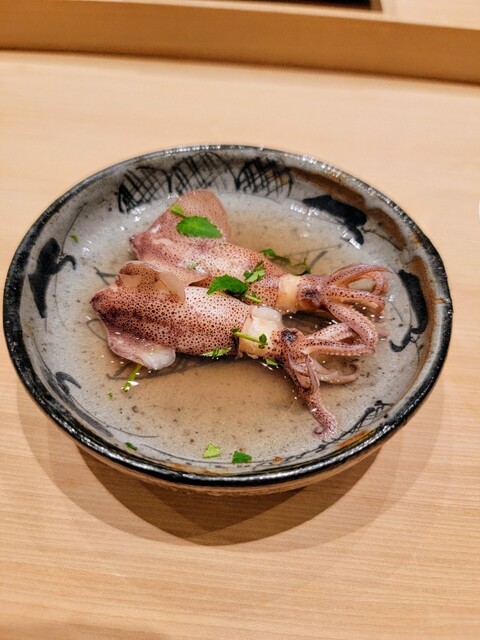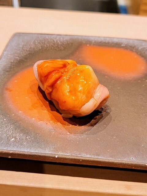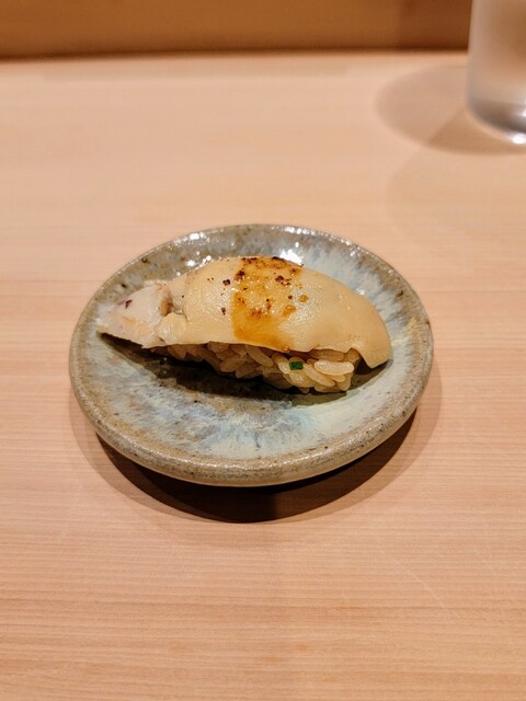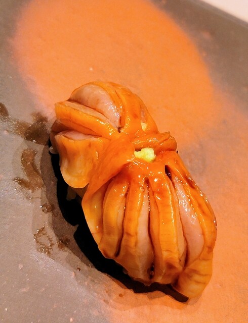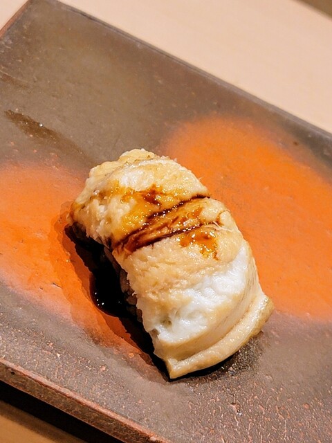 つまみは白甘鯛、10日ほど寝かせたとか。蛸柔らか煮、鯵ののり巻きだったかな。ウニを2種類、小浜のウニはそのまま、天草のウニは手巻き寿司で、鰯のつみれで御酒が進みます。ヨコワの薬味はモロミ味噌とわさびだったかな。鰹の醤油糟のヅケ、蒸し鮑と鮑の肝ご飯も御酒が進みます。たしか吉井川の青鰻、海苔の茶碗蒸しでお寿司です。