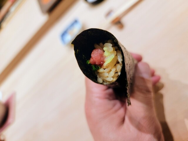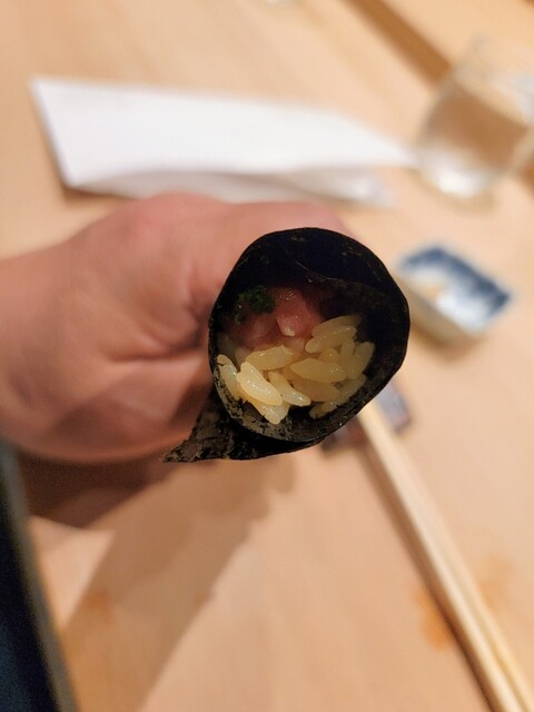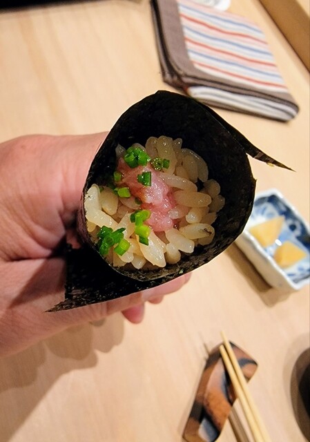 手巻き寿司はネギトロかな、ピンぼけでした。