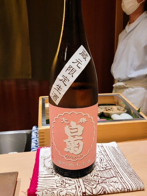 熱燗は大典白菊、お寿司は鯛、白甘鯛、カンパチ、烏賊、ヅケ、