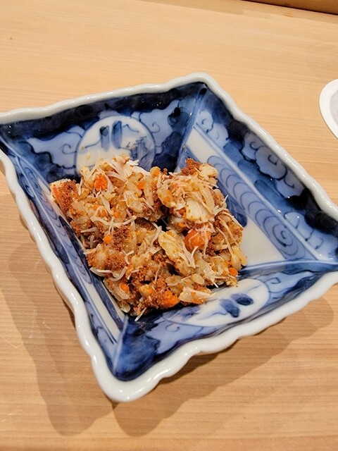 鯖、毛蟹、車海老、淡路島由良のウニご飯、ウニは海山ブランドとのこと。洲本市にある海山というお店の大将のお父様が腕利きの素潜り漁師です。