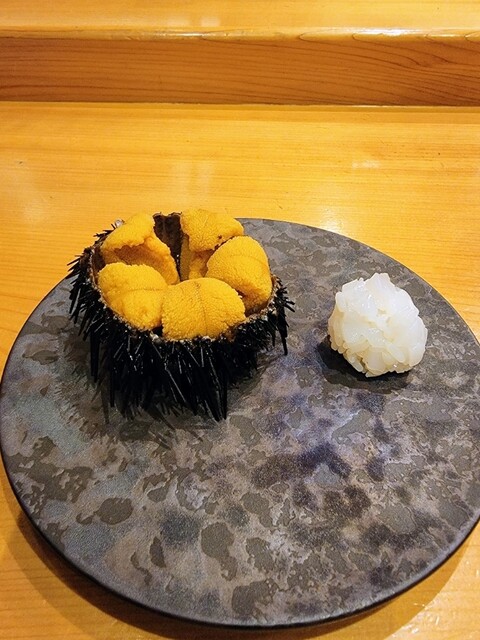 岩手県洋野町岩手広野町種市の殻つきウニとヤリイカの入ったシャリ