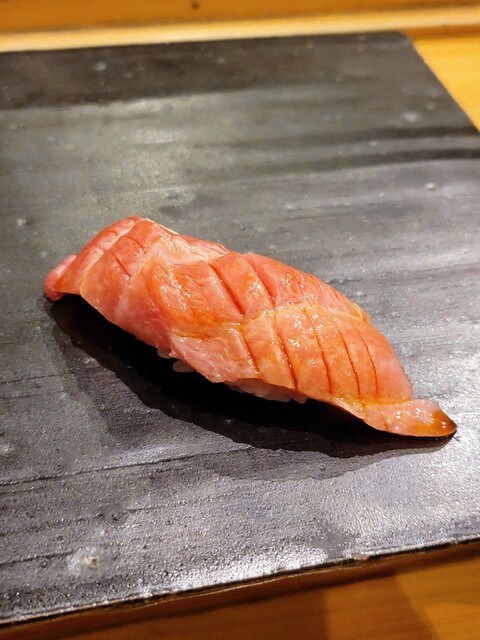 大トロ、何かの炙り、鯵、穴子は塩とツメ、