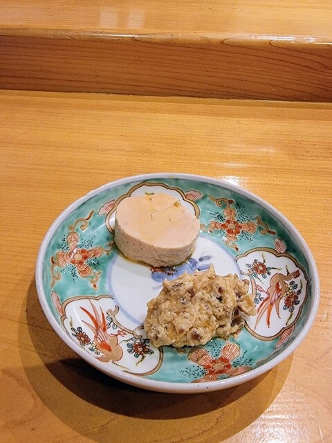 酒肴はあん肝ペーストと刻んだ奈良漬
