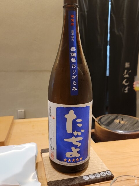 冷酒は磯自慢大吟醸、酒米の兵庫県東条秋津山田錦を45%精米、静岡県