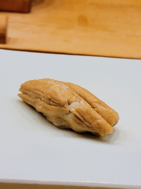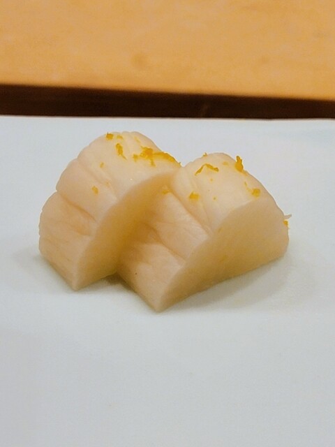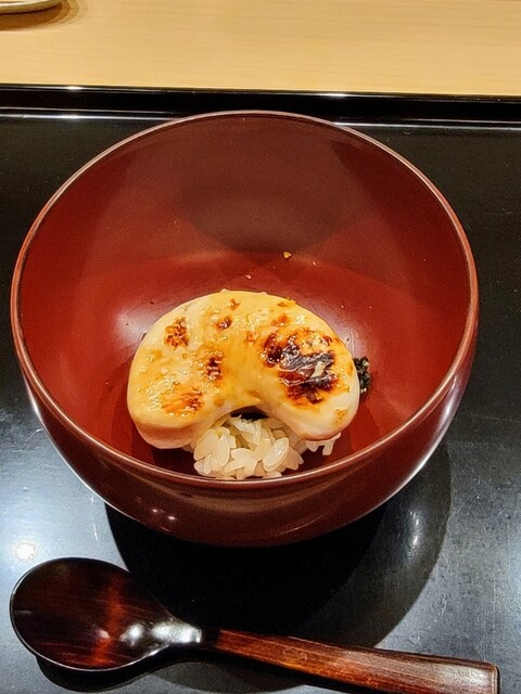 ・平貝の磯辺焼き、梅肉山葵、歯ごたえ良い