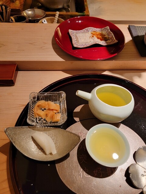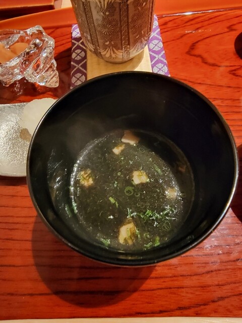 丸い器は蒸し物だった。出汁に太刀魚かな。